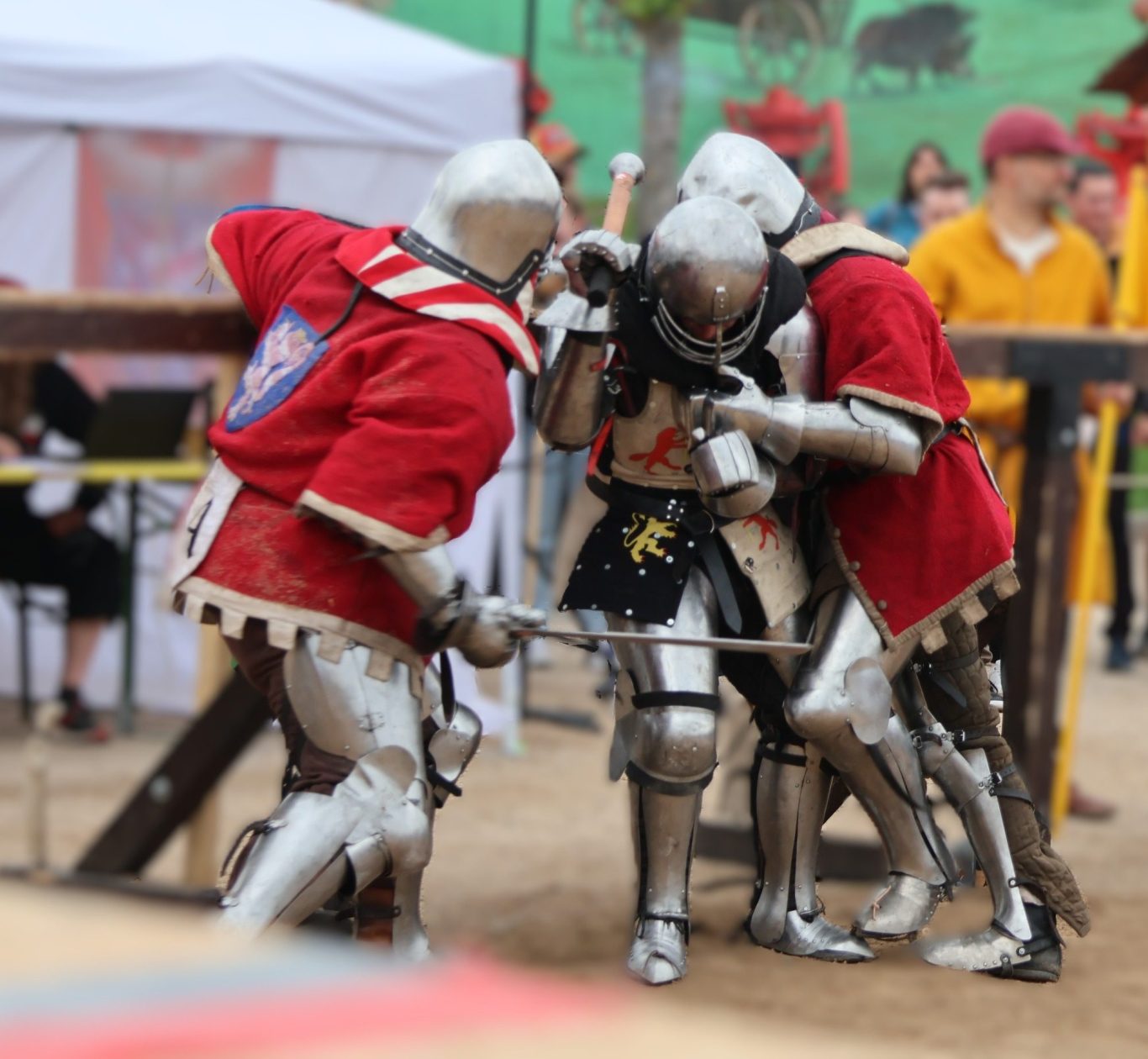 Bei uns handelt es sich um einen Kampfsport ähnlich wie MMA oder Boxen, nur dass wir in Rüstungen mit „Waffen“ kämpfen. Jedoch ist unsere große Besonderheit, dass es neben den Duellen auch Gruppenkämpfe gibt, die „Buhurt“ genannt werden.